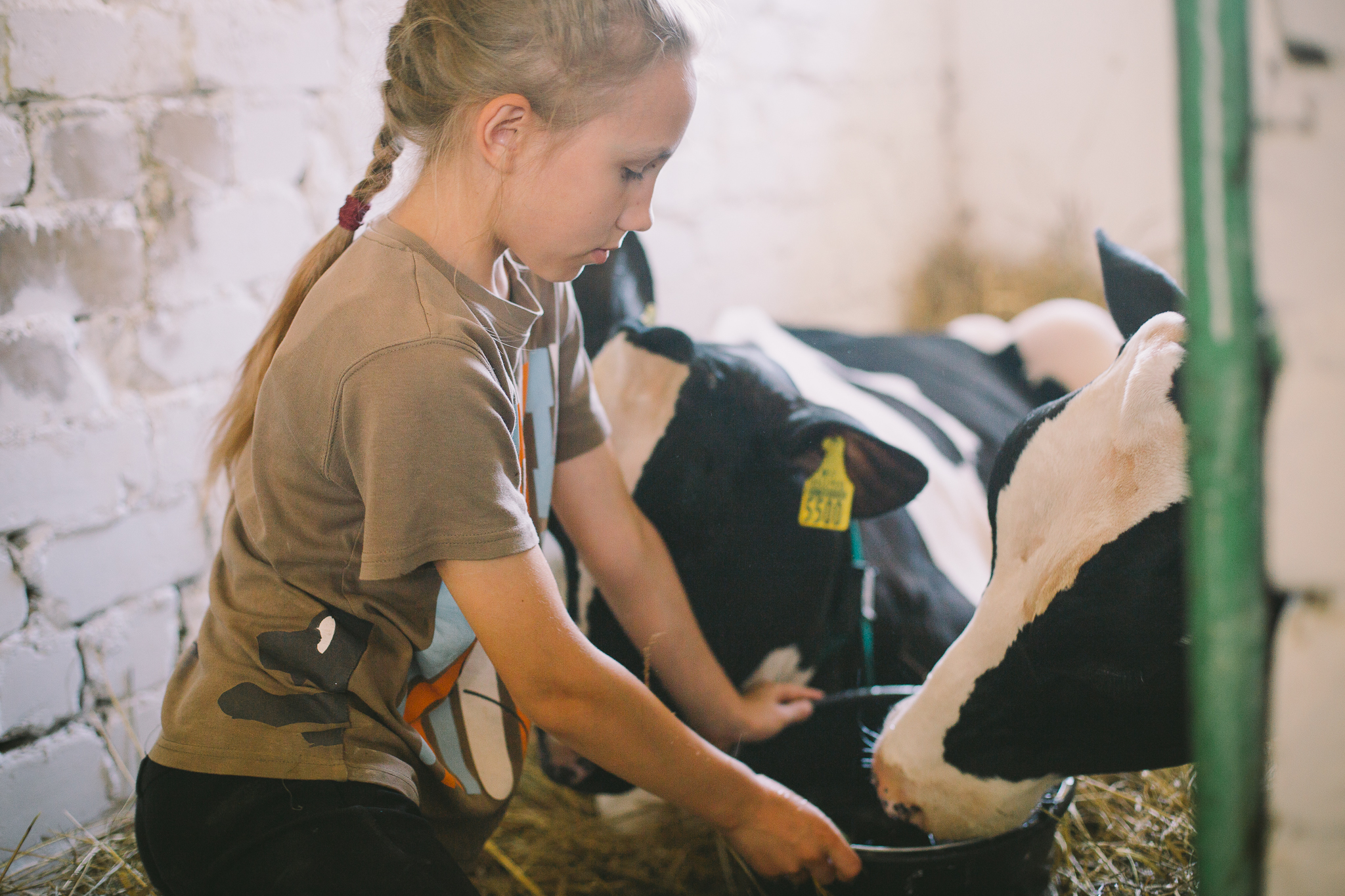 2. attēls. Bērniem jāparūpējas arī, lai telītes tiktu pabarotas un padzirdītas.