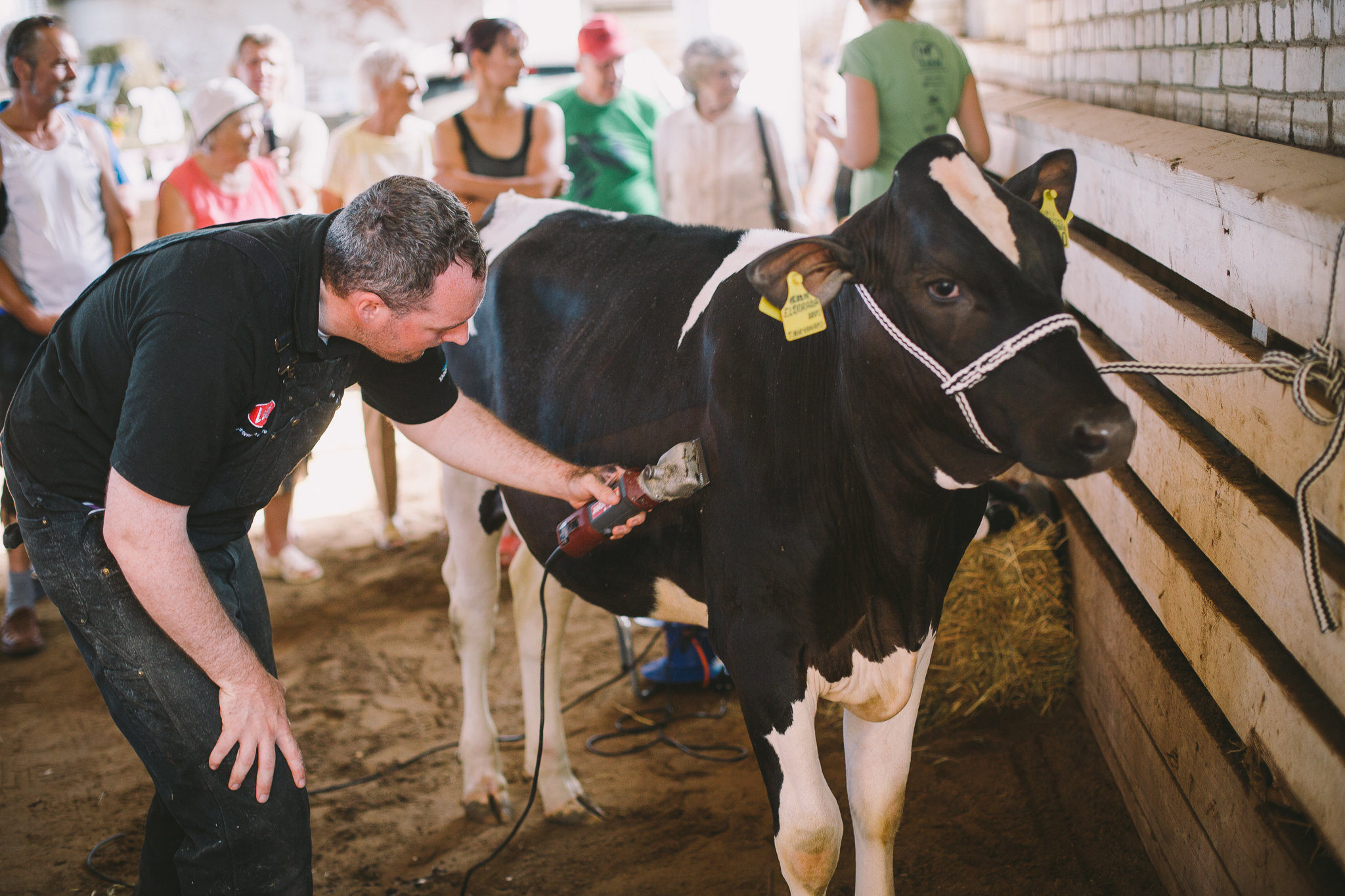 Lai paspētu sarast ar apstākļiem, iepriekš tika atvestas arī slaucamās govis, un tās izvadei sagatavoja un nocirpa viens no visaugstāk vērtētajiem Lielbritānijas profesionālajiem dzīvnieku sagatavotājiem Richard Bostock, kurš šova dienas rītā parādīja arī ieinteresētajiem skatītājiem, kas un kā tiek darīts, cērpot telīti.