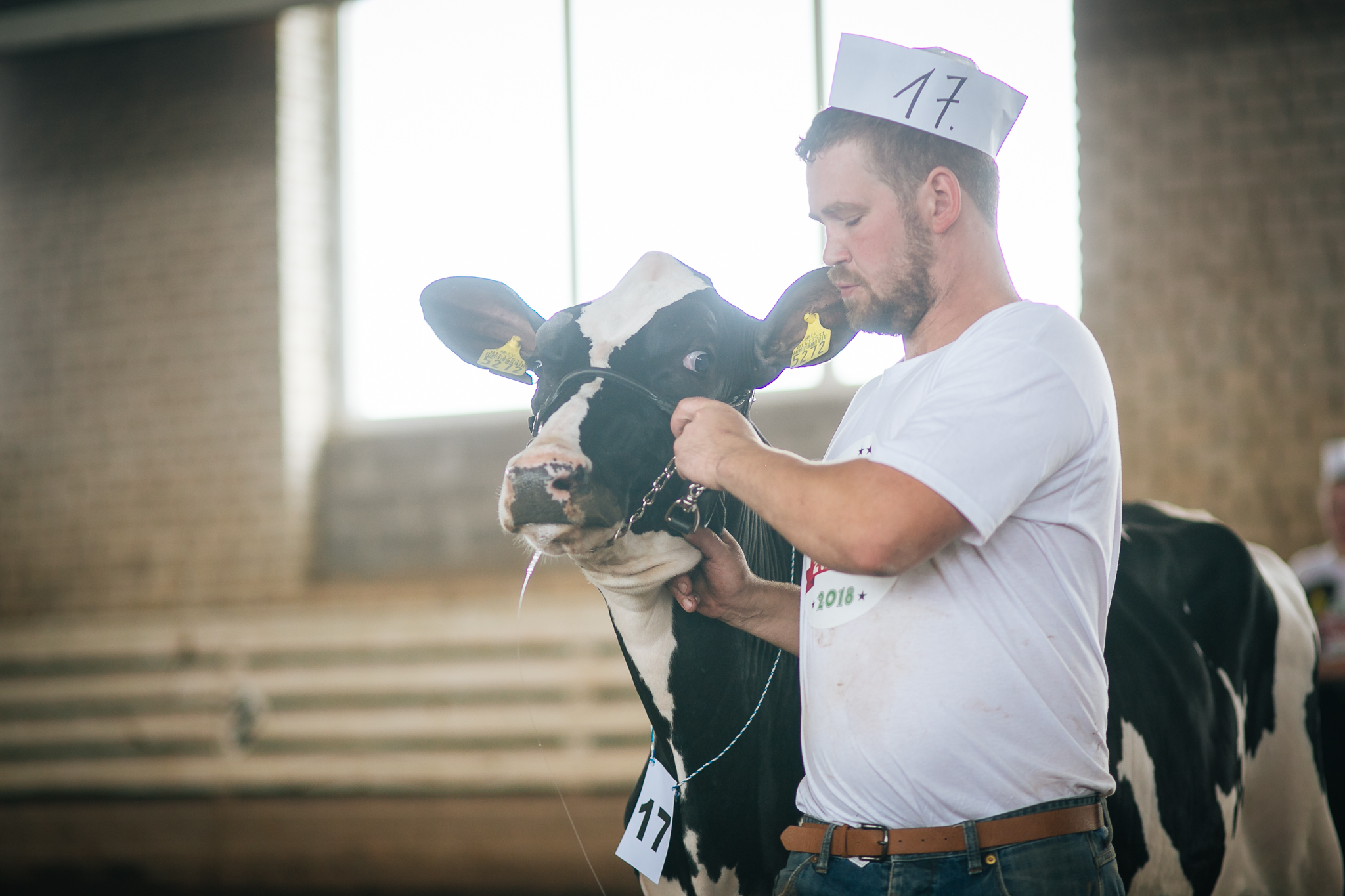 7.attēls. Vecākās telīšu klases uzvarētāju Malienu izstāda telītes saimnieks Mārtiņš Bitenieks.